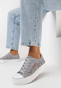 Szare Ażurowe Trampki Przed Kostkę Russi