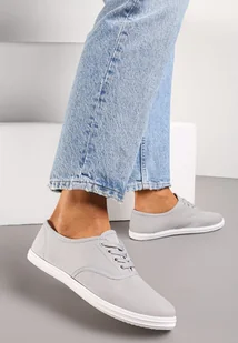 Szare Tenisówki na Płaskiej Podeszwie ze Sznurowaniem i Okrągłym Noskiem Ezoma
