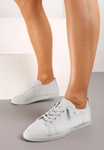 Szare Sznurowane Tenisówki z Ozdobnymi Cyrkoniami na Płaskiej Podeszwie Iiloeva - Renee