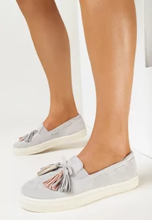 Szare Tenisówki Mokasyny z Elastyczną Cholewką i Klamrą Vaiara
