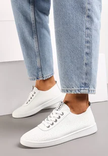 Biało-Szare Tenisówki z Perforacją i Ozdobną Taśmą na Języku Ylaria