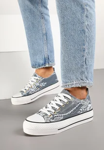 Szare Trampki przed Kostkę Zdobione Koronką Gonalis