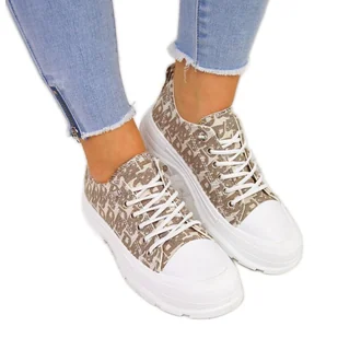 Absolutny hit sezonu! Trampki damskie na platformie to najnowsza propozycja marki Sabatina. Modne trampki osadzone na stylowej platformie wpasują się zarówno w stylizacje codzienne, jak i sportowe. Cholewka wykonana jest z wysokiej jakości materiału. Trampki damskie na platformie z napisami beżowe Sabatina beżowy. Sprawdź na butymodne.