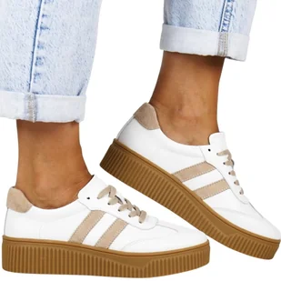 W naszej kolekcji prezentujemy wyjątkowe półbuty damskie, trampki na grubej podeszwie. Te eleganckie buty to absolutny must-have w garderobie każdego, kto ceni sobie zarówno styl, jak i wygodę. Cholewka została wykonana z wysokiej jakości skóry naturalnej licowej w kolorze czarnym, subtelne złote ozdoby dodają uroku. Wkładka jest miękka i skórzana. Nie czekaj dłużej! Wybierz komfort, jakość i styl.