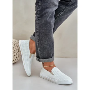 Tenisówki damskie typu slip-on to wygodna i stylowa opcja na co dzień. Dziurkowana cholewka zapewnia przewiewność, idealną na cieplejsze dni. Zaokrąglone noski dodają subtelnego charakteru, a wkładka z pianki, pokryta materiałem, gwarantuje komfort przez cały dzień. Te tenisówki to świetny wybór do casualowych stylizacji! Przy wyborze rozmiaru prosimy sugerować się tabelą rozmiarów. Wsuwane Eko Skórzane Damskie Tenisówki Trampki Z Napisem Jasnobeżowe beżowy.