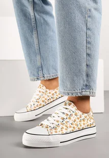 Żółte Trampki z Cholewką Zdobioną Kwiatowym Wzorem Folaianna