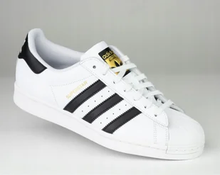 100% skóra Buty adidas Superstar M EG4958Cechy: Buty Adidascholewka w tym modelu została wykonana ze skóry naturalnej, która jest bardzo trwała i odporna na ścieranie, nic więc dziwnego, że możemy ją nosić przez wiele lat, a ona wciąż wygląda jak nowatym, co wyróżnia Superstary na tle innych butów są oczywiście: gumowa osłona palców przypominająca muszlę, 3 paski po bokach charakterystyczne dla marki Adidas oraz złote logo Originals na językuzaletą tego modelu jest również miękka wkładka wewnętrzna EVAMateriał: skóraKolorystyka: biały Trenerzy Adidas Superstar mają następujące cechy: