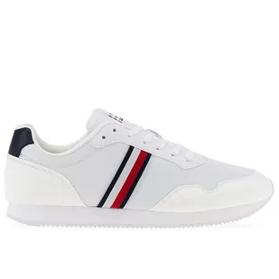 Buty Tommy Hilfiger Core Lo Runner FM0FM04504-YBS – białe Męskie sneakersy Tommy Hilfiger Core Lo Runner. Klasyczne, męskie buty to idealna propozycja na co dzień. Model Core Lo Runner od prestiżowej marki Tommy Hilfiger doskonale pasować będzie do codziennych stylizacji. Minimalistyczna cholewka została wykonana z mieszanki poliestru z recyklingu i poliuretanu. Wewnątrz buta znajduje się wyściółka z poliestru oraz poliuretanowa wkładka.