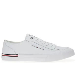 Buty męskie Tommy Hilfiger Corporate Vulc Leather FM0FM04953-YBS – białe Męskie trampki z płótna Tommy Hilfiger Corporate Vulc Leather. Klasyczne, męskie trampki to kwintesencja miejskiego stylu. Model Core Corporate Leather od prestiżowej marki Tommy Hilfiger doskonale wpisze się w miejskie i codzienne stylizacje. Minimalistyczna cholewka została wykonana z naturalnej skóry, która świetnie sprawdza się podczas codziennego użytkowania. Wewnątrz buta znajduje się wyściółka z poliestru oraz poliuretanowa wkładka.