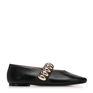 Materiał: Naturalna skóra owcza zapewnia trwałość, dzięki czemu baleriny będą Ci służyć przez długi czas. Elastyczna gumka: Podtrzymuje stopę, zapewniając stabilność i komfort noszenia przez cały dzień. Detale: Dekoracyjne, metalowe akcenty na pasku nadają butom wyjątkowego charakteru, subtelnie podkreślając elegancję codziennych stylizacji. Okrągły nosek: