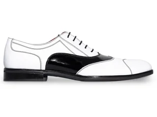 Biało-czarne lakierki męskie - Spektatory Al Capone Caponki T195 45 Spektatory - połączenie najwyższej elegancji i awangardy. Biało-czarne lakierki w klasycz...
