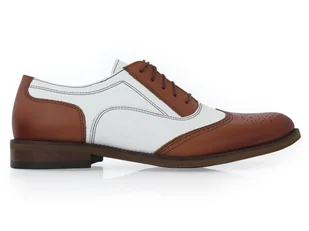 Brązowo-białe obuwie męskie - spektatory, caponki T168 44