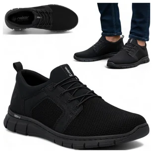 Półbuty Męskie Sportowe Sneakersy Wsuwane Oddychające Wiosenne Czarne RIEKER 46 __________Wyjątkowe buty Rieker__________ Sneakersy, wykonane z oddychającyc...
