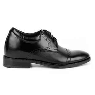 Buty skórzane męskie podwyższające w stylu brogsów P45KB to eleganckie obuwie dla mężczyzn, które dodaje 7 cm wzrostu dzięki swojemu całkowitemu podwyższeniu. Buty posiadają wudowany koturn o wysokości 4 cm. Zalety butów skórzanych męskich podwyższających P45KB to przede wszystkim zwiększenie pewności siebie, poprawa postawy i podniesienie estetyki całego stroju. Dodatkowo, buty wykonane są z wysokiej jakości skóry, co gwarantuje trwałość i wygodę użytkowania.
