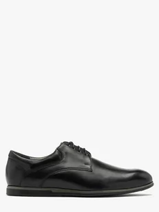 Czarne półbuty męskie z szarym otokiem z linii RYŁKO. Model wykonany ze skóry licowej. Podszewka i wyściółka skórzana.
