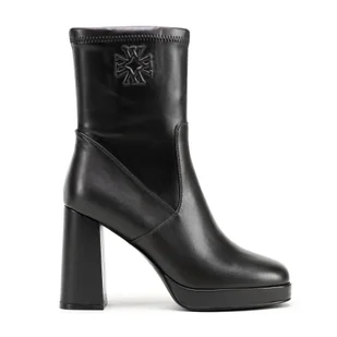 Materiał: Elegancka skóra naturalna ze wstawkami z ekoskóry, zapewniająca trwałość i oryginalny wygląd. Design: Kwadratowy nosek nadaje nowoczesnego charakteru i komfortu noszenia. Wzór: Tłoczony monogram na wysokości łydki stanowi subtelny, efektowny detal. Obcas: Wysoki słupek optycznie wysmukla sylwetkę i zapewnia stabilność. Zapięcie: Suwak na boku umożliwia łatwe zakładanie i zdejmowanie botków.