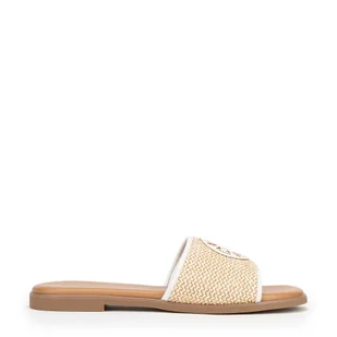 Design: Plecionka to modne i stylowe wykonanie, które przyciąga uwagę, nadając Twoim codziennym stylizacjom wyjątkowego charakteru. Płaski obcas: Oferuje stabilność, dzięki czemu możesz cieszyć się pełną swobodą ruchu. Logo producenta: Umieszczone na przodzie klapek, stanowi elegancki akcent, który podkreśla charakter obuwia.