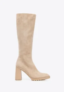 Damskie kozaki z imitacji zamszu na słupku beżowe