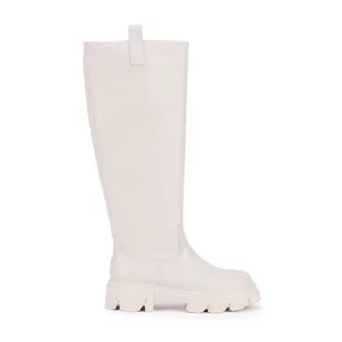 Damskie kozaki ze skóry na grubej podeszwie kremowe