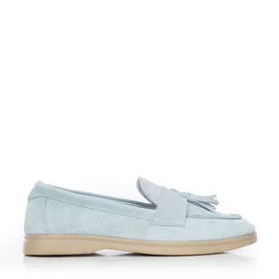 Damskie mokasyny zamszowe z chwostem niebieskie