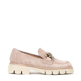 Wyrafinowana elegancja w damskich mokasynach Odkryj nasze wyjątkowe mokasyny, które łączą luksusowy wygląd z niezrównanym komfortem. Nasze damskie mokasyny ze skóry zamszowej to synonim wyrafinowanego stylu i praktyczności, idealne dla kobiet, które cenią sobie elegancję i wygodę każdego dnia. Dla kogo? Te mokasyny są stworzone dla kobiet, które pragną wyglądać elegancko i jednocześnie czuć się komfortowo w każdej sytuacji. Doskonale sprawdzą się zarówno w formalnych, jak i casualowych stylizacjach, dodając im szyku i subtelnego uroku. Jak stylizować? Wsuwane mokasyny z dekoracyjnymi metalowymi elementami w postaci łańcuszka są idealnym dodatkiem do każdej garderoby.