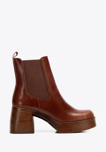 Damskie sztyblety ze skóry naturalnej na masywnej platformie brązowe