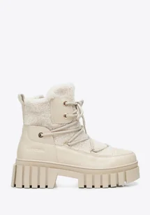 Materiał: Skóra ekologiczna i sztuczne futro w typie kożucha – ciepłe, miękkie i przyjemne w dotyku, gwarantują komfort nawet w najchłodniejsze dni. Ocieplane wnętrze: Skutecznie chroni przed chłodem, utrzymując stopy w przyjemnym cieple przez cały dzień. Zamek z boku i sznurowanie z przodu: To szybkie zakładanie oraz możliwość idealnego dopasowania do stopy.