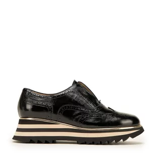 Damskie wsuwane sneakersy na platformie. Jesteś miłośniczką mody, ale jednocześnie cenisz sobie uniwersalność i wygodę? Lubisz posiadać buty, które można stylizować na wiele sposobów? Jeśli tak, to ten luksusowy model spełni wszystkie twoje oczekiwania! Te damskie półbuty dodadzą charakteru każdej twojej stylizacji, a ty doświadczysz nowego wymiaru mody i wygodnego noszenia. Kluczowe cechy: Design: Uwagę przyciągają: błyszcząca skóra lakierowana oraz perforacje: