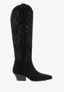 Materiał: Skóra kozia o zamszowym wykończeniu gwarantuje miękkość, elegancki wygląd i trwałość – buty będą cieszyć oko przez wiele sezonów. Długa cholewka: Smukła linia podkreśla nogi i dodaje stylizacji wyjątkowego charakteru. Szpiczasty nosek: Optycznie wydłuża nogi i dodaje całości kobiecej elegancji.