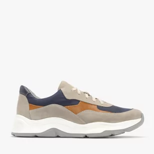 Sportowy półbut męski w kolorze granatowym i szarym. Model wykonany ze skóry welurowej i tkaniny ze wstawką skóry licowej. Podszewka wykonana z tkaniny, a wyściółka skórzana. R. FLY - Niezwykle lekka i sprężysta podeszwa wykonana z materiału EVA. Zapewnia wysoki komfort użytkowania.