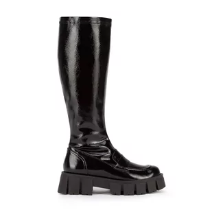 Ponadto gruba podeszwa na wyraźnym traktorze świetnie izoluje od zimna i zapewni przyczepność podczas każdej pogody. Świetnie podkreślą nogę w spódnicy mini lub dopasowanych spodniach. Wysokie kozaki z lakierowanej skóry to dodatek dla każdej kobiety lubiącej modne dodatki z charakterem. Nasza rada: świetnie będą wyglądały z krótkim płaszczem.