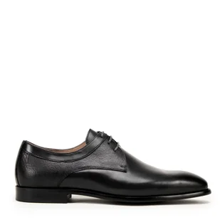 Materiał: Wykonane z wysokiej jakości skóry naturalnej licowej, która zapewnia nie tylko elegancki wygląd, ale także trwałość i odporność na codzienne użytkowanie. Komfort: Skórzana wyściółka zapewnia wygodę noszenia przez cały dzień. Praktyczność: Solidna podeszwa chroni stopę na nierównym terenie i amortyzuje przy uderzeniach. Detale: Buty posiadają nosek w kształcie migdała oraz eleganckie sznurowanie, które nadaje im klasyczny i uniwersalny wygląd.