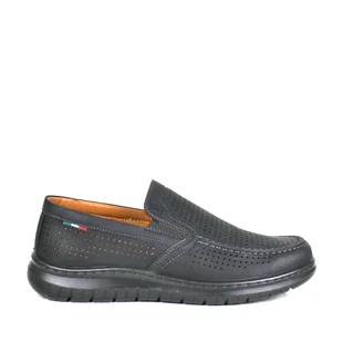 Męskie Mokasyny Ażurowe Półbuty Wsuwane Unisoft 8214 Czarne