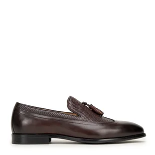 Męskie mokasyny z dekoracyjnym chwostem Zanurz się w świecie elegancji, dzięki męskim mokasynom, stanowiącym kwintesencję komfortu i stylu. Mokasyny wykonane z najwyższej jakości skóry naturalnej licowej są nie tylko symbolem luksusu, ale także gwarancją trwałości i niepowtarzalnego wyglądu. Wyściółka została wykonana ze skóry naturalnej, dzięki czemu zapewnia komfort noszenia przez cały dzień. Klasyczny fason mokasynów oraz zaokrąglony nosek dodają finezji i sprawiają, że buty są bardziej uniwersalne w stylizacji. Ten model wyróżnia się unikalnymi detalami w postaci plecionki i chwostu, które podkreślają ich styl.