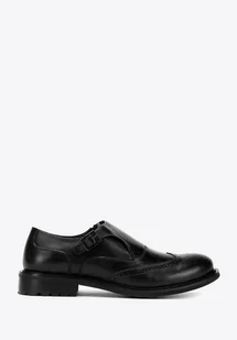 Męskie brogsy ze skóry z motywem w jodełkę czarne 42