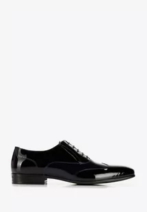 Męskie oksfordy z lakierowanej skóry dwukolorowe czarno-granatowe 43