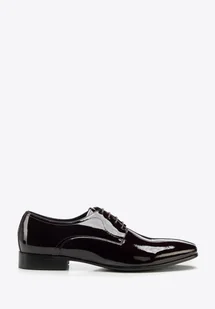 Derby ze skóry lakierowanej – klasyka w eleganckim wydaniu Odkryj połączenie tradycji i luksusu w męskich półbutach typu derby. Wykonane z naturalnej skóry lakierowanej, zachwycają subtelnym lakierowanym połyskiem, który dodaje im wyrafinowanego charakteru. Migdałowy nosek nadaje stopie smukły, elegancki kształt, a klasyczne sznurowanie pozwala na idealne dopasowanie obuwia do stopy. Płaski obcas oraz gumowa podeszwa gwarantują komfort i stabilność przy każdym kroku. Dla kogo? Te buty to propozycja dla mężczyzn, którzy cenią ponadczasową elegancję i wygodę.