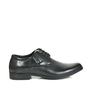 Męskie półbuty wizytowe wykonane ze skóry ekologicznej w kolorze czarnym, eleganckie i minimalistyczne. Skórzana wkładka zapewnia komfort i wygodę. Niezależn...