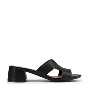 Połączenie nowoczesnego designu i ponadczasowej elegancji – te skórzane klapki na słupku to synonim luksusu, który łączy komfort z modnym stylem. Wycięcie w kształcie litery „H” subtelnie eksponuje stopę, nadając jej smukły wygląd, a jednocześnie wprowadza do projektu odrobinę geometrycznej dynamiki. Wysokiej jakości naturalna skóra otula stopy miękkością, zapewniając wygodę przez cały dzień, a precyzyjne wykończenie dodaje eleganckiego charakteru. Obcas słupek łączy stabilność z odrobiną wysokości, podkreślając nowoczesny, ale elegancki wygląd.