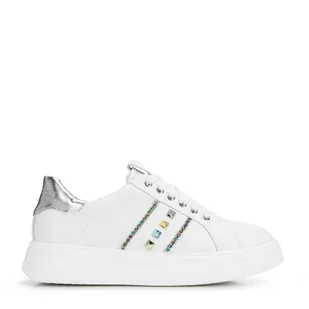 Sneakersy z imitacji skóry z ozdobami biało - srebrne