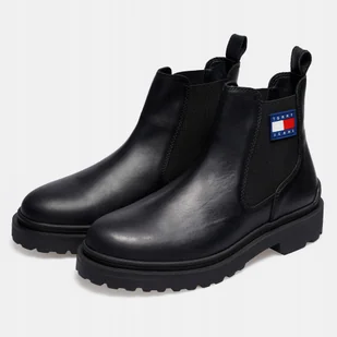 Tommy Hilfiger Jeans Oryginalne Półbuty Wsuwane Czarne Sztyblety Skóra 42