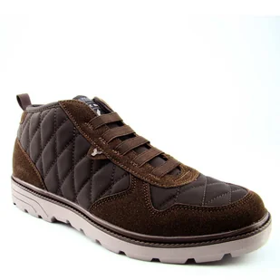 Płeć: Męskie, Kolor: Brązowy, Wysokość: Wysokie, Materiał: Tkanina, Rodzaj zapięcia: Gumy ściągające, Dodatkowe informacje: Sztywny zapiętek, Stan: Nowy