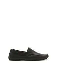 Czarne mokasyny męskie wykonane z wysokiej jakości skóry naturalnej, to elegancka i wygodna propozycja obuwia typu driving mocs. Ich klasyczny design wyróżnia się subtelnym, ale efektownym detalem — dekoracyjnym obszyciem czerwoną nicią, które dodaje charakteru i unikalności tym mokasynom. Podeszwa z gumowymi wypustkami, typowa dla modeli driving mocs, zapewnia doskonałą przyczepność i elastyczność, co sprawia, że buty są idealne zarówno do jazdy samochodem, jak i na co dzień. Czarne mokasyny, dzięki swojej uniwersalności, świetnie pasują do casualowych i półformalnych stylizacji, a kontrastowe czerwone przeszycia nadają im nowoczesnego akcentu.
