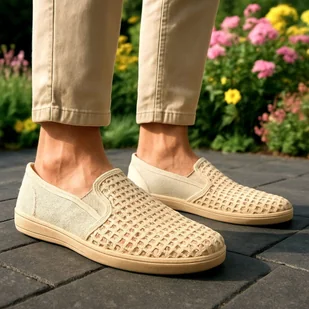 Mokasyny Męskie Letnie z Lnu i Siatki – Model 2380 Beżowe Mokasyny Ażurowe Jasne Beżowe Letnie 2380 to wyjątkowe połączenie naturalnych materiałów i lekkiej ...
