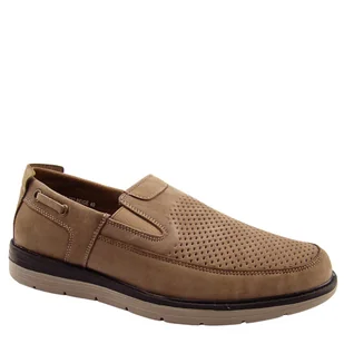 Płeć: Męskie, Kolor: Beżowy, Wysokość: Niskie, Materiał: Skóra naturalna, Rodzaj zapięcia: Wsuwane, Dodatkowe informacje: Wkładka skórzana, Stan: Nowy