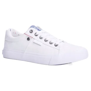 Trampki wiązane białe Big Star AA274511 / 174097. Półtrampki zostały wyprodukowane przez popularną oraz uznawaną firmę Big Star. Buty męskie będące przedmiotem sprzedaży są dostępne w rozmiarach 36-45. Obuwie wykonano z materiału, a ich wnętrze także z materiału bawełnianego. . Buty zapewniają wspaniały komfort, a także pasują wręcz do każdej stylizacji.