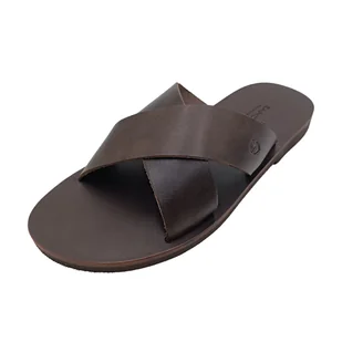 Brązowe klapki męskie z naturalnej skóry SANDINISTA S4681 [Rozmiar: 43]
