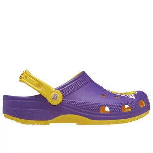 Klapki męskie Crocs NBA Los Angeles Lakers Classic Clog 208650-75Y – fioletowe Uniwersalne klapki Crocs z serii Classic Clog zaprojekowane z myślą o fanach Los Angeles Lakers. Model tego obuwia to gwarancja wygody podczas ciepłych dni. Buty posiadają komfortową konstrukcję z szerokimi wkładkami i tylnym paskiem, który przyjemnie otula piętę. Dzięki wentylacyjnym otworkom buty są przewiewne i zapewniają utrzymanie odpowiedniej temperatury. Model w całości zostały wykonane z materiału Croslite, który jest niezwykle lekki, co sprawia, że buty są jeszcze wygodniejsze.