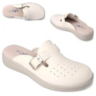 Klapki męskie medyczne sanitarne białe skórzana wkładka Inblu RH-33-44