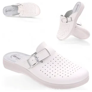 Klapki męskie medyczne sanitarne białe skórzana wkładka Inblu RH-33-43